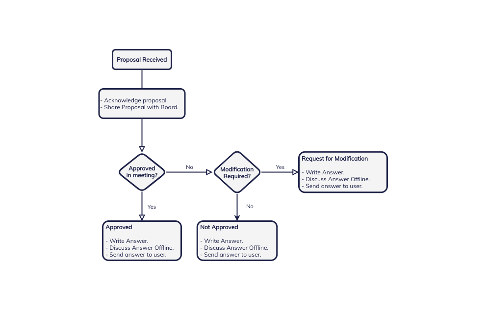 Some proposals may be rejected. In this case, the Board commits to notifying the proposal submitter in writing.