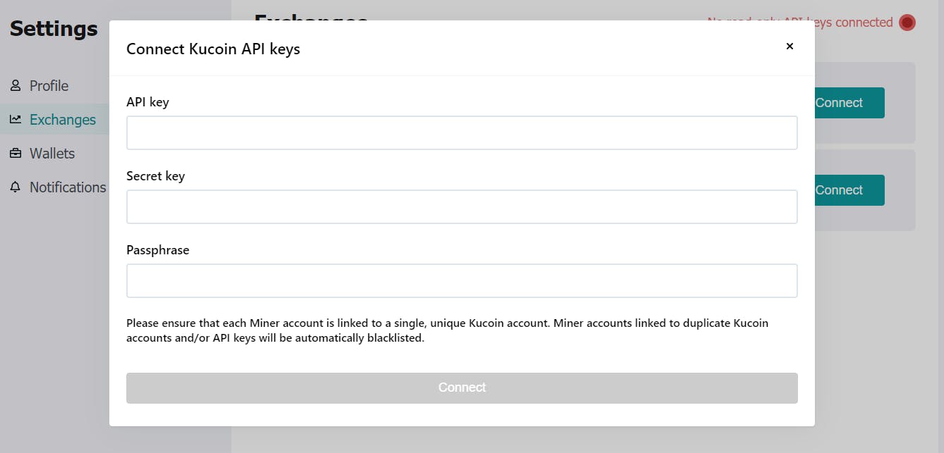 2.6 Go to the Settings page, and add the read-only API to your account.