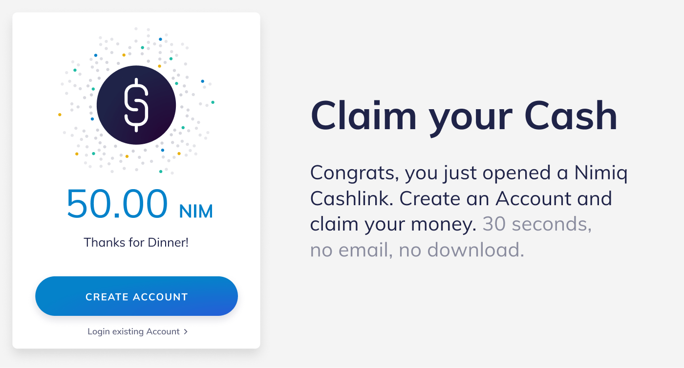 Cashlinks really shine when you want to reach users who don’t yet have an account address on the Nimiq Blockchain.