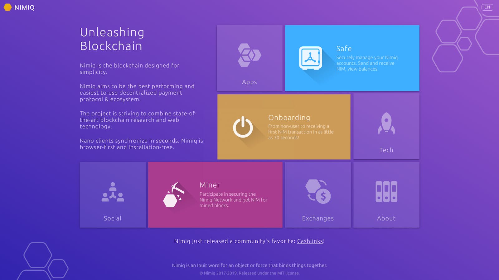With the launch of this website, we aim to onboard many new users to the Nimiq Blockchain. Long-time supporters will easily find information like the developer center, an extended and detailed roadmap, and a growing list of community apps.