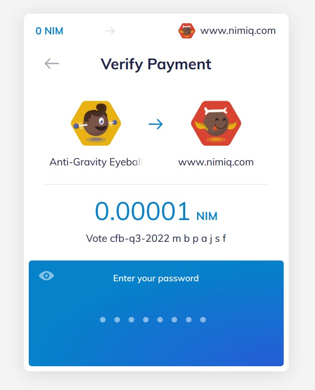 4- You will be redirected to the Nimiq Wallet where you will be able to vote with your Nimiq account you select.