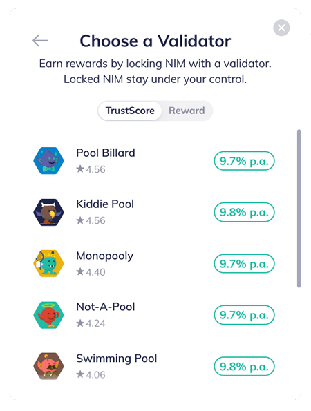 The Nimiq wallet allows users to delegate their stake to a validator through RPC. Nimiq Proof-of-Stake is non-custodial, so delegating stake to a validator pool does not bear the risk of surrendering the NIM to the pool manager.