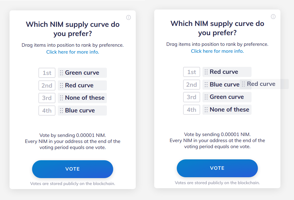 [UPDATE 2: The follow-up ranking vote concluded on June 8, 2020 and the NIM supply curve for Nimiq 2.0 has been determined as the "BLUE" curve (community suggestion). See results here.]