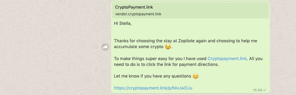 By the end of the meeting, they had learned how to use Cryptopayment.link and were excited to use the tool for Zopilote vacation packages and rentals. We’d like to thank Zopilote for the insightful feedback given in the meeting and making Zopilote the first real-world adopter of Cryptopayment.link.