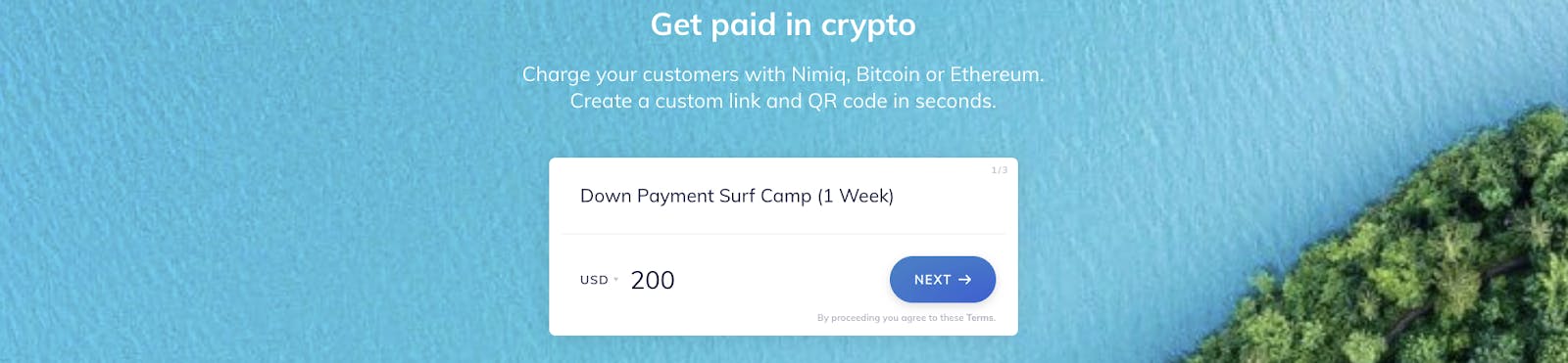 In a nutshell, we feel is the world’s simplest crypto payment request and payment monitoring tool. It’s been built by Team Nimiq to make it easy for people to earn crypto--instead of buying it--by selling their service, product or other offering!