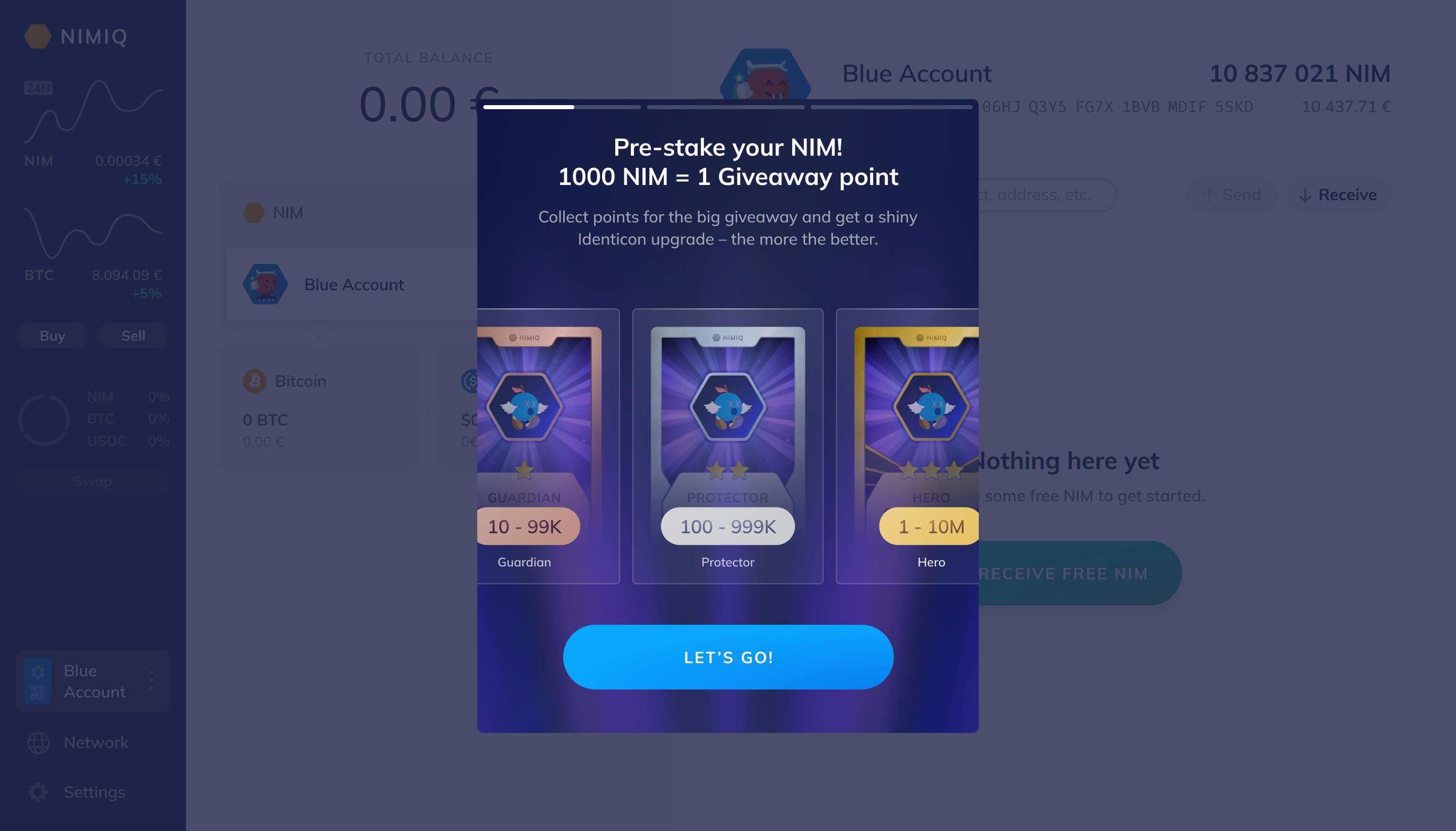We're excited to announce that the Nimiq Pre-staking Rewards and Giveaway Campaign is live and will run from Monday October 7 to Sunday November 10! The campaign is aimed at supporting a smooth migration to Nimiq's new Proof of Stake (PoS) consensus algorithm, which is planned to begin November 19 (learn more about the migration process). This campaign rewards everyone that supports the migration by pre-staking their NIM (rules apply). There are 200 million NIM in rewards up for grabs!