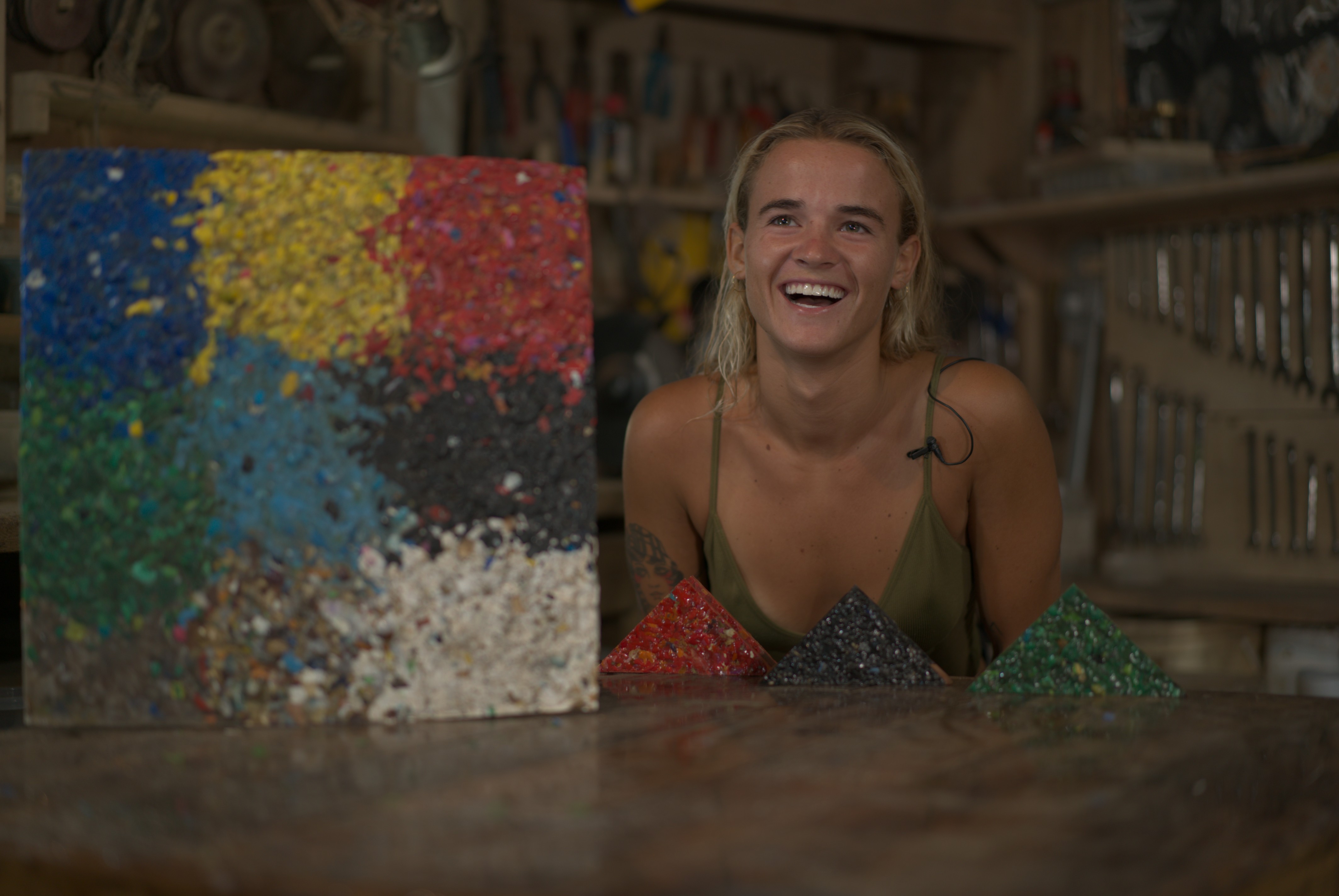 With a piece of equipment that he built and attached to his bicycle, he collects plastics and microplastics, and ingeniously separates them from sand and other sediments through a manual filtering process. After gathering the plastic comes the task of classifying it. Not all plastics are the same and Alejandro is very mindful of this so that he does not create any additional pollution. Once the plastic has been classified, he heats up and compresses it into usable shapes. In his own words “These are not the prettiest of all items — we agree here — but they hold significant value. When you hold these pieces of craftsmanship you feel something different inside of you, that feeling is the power of change.”